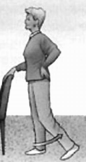 Tập dạng khớp háng:Giữ cho hông, gối, cổ chân thẳng và cơ thể ở tư thế đứng thẳng. Dạng chân, sau đó hạ chân từ từ cho tới khi bàn chân chạm đất (làm 10 lần). Nhắc lại 3-4 lần/ngày.