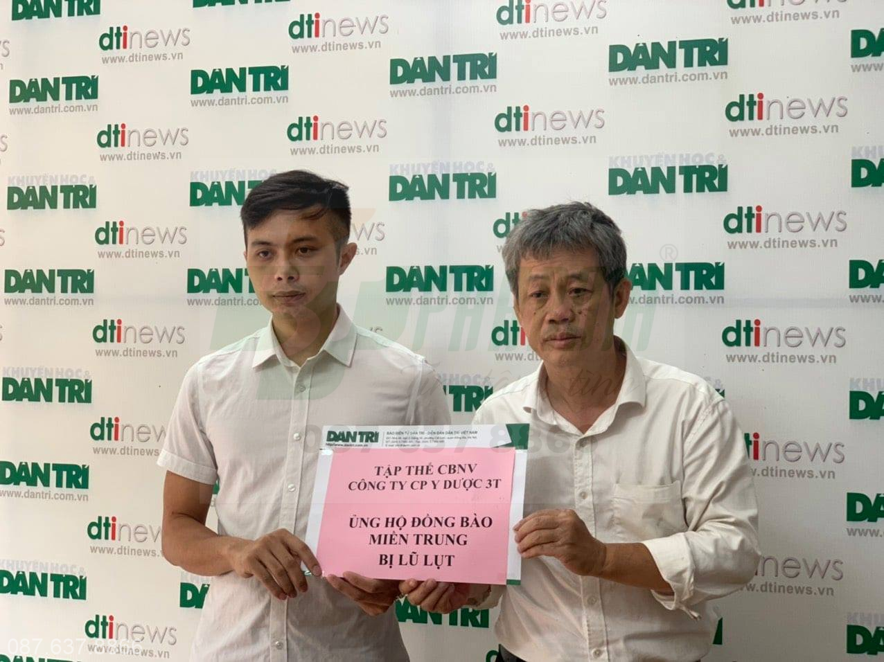 Đại diện Tập đoàn 3T – Đức Thịnh trao số tiền ủng hộ đồng bào lũ lụt miền Trung cho Quỹ Nhân ái của báo Dân trí
